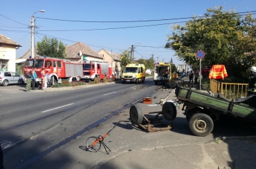 Egy tehergépkocsi és egy személygépkocsi ütközött össze a tereskei elágazónál.