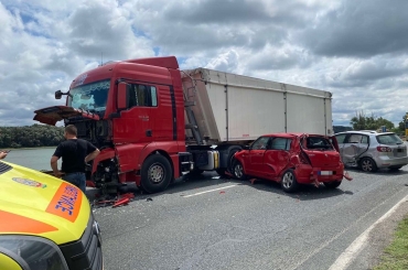 Négy személygépjármű ütközött össze az M7-es autópálya Balaton irányába vezető oldalán, Baracska térségében.