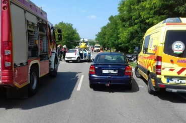 Két személyautó ütközött össze a 7-es számú főút és a Hevesi Sándor utca kereszteződésénél.