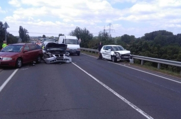 Négy személygépkocsi ütközött össze a 85-ös számú főúton a vasúti felüljáró előtt Győr irányába.