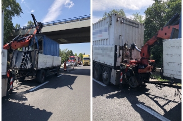 Székesfehérvár térségében egy tehergépjármű egy közúti felüljáró hídjának ütközött.