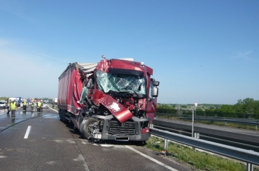 Két kamion ütközött össze az M43-as autópálya 10-es kilométerszelvényében a határ felé vezető oldalon. A balesetben az egyik jármű rakománya az útra szóródott.