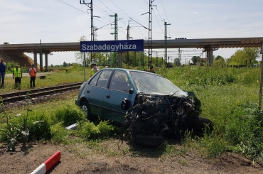 Egy gépjármű vonattal ütközött össze Szabadegyháza térségében, ezért teljes útlezárás van érvényben.