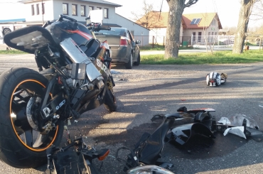 Egy motorkerékpár és egy személygépkocsi ütközött össze Lepsény belterületén.