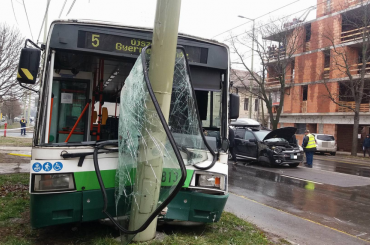 Egy trolibusz ütközött villanyoszlopnak Szegeden. A balesetben többen megsérültek.