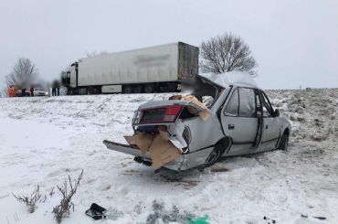 Egy kamion és egy személyautó ütközött össze Berettyóújfalu közelében.