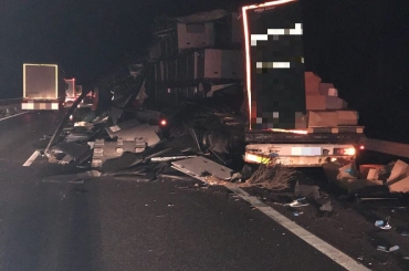 Két kamion ütközött az M1-es autópálya Hegyeshalom felé vezető oldalán, Győr térségében.