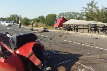 Egy személygépkocsi és egy kamion frontálisan összeütközött. Az autó sofőrje a helyszínen életét vesztette.