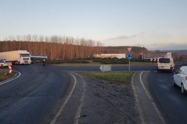 Kamion műszaki meghibásodása és mentése miatt félpályán halad a forgalom a 2-es számú főúton, a rétsági körforgalomban.