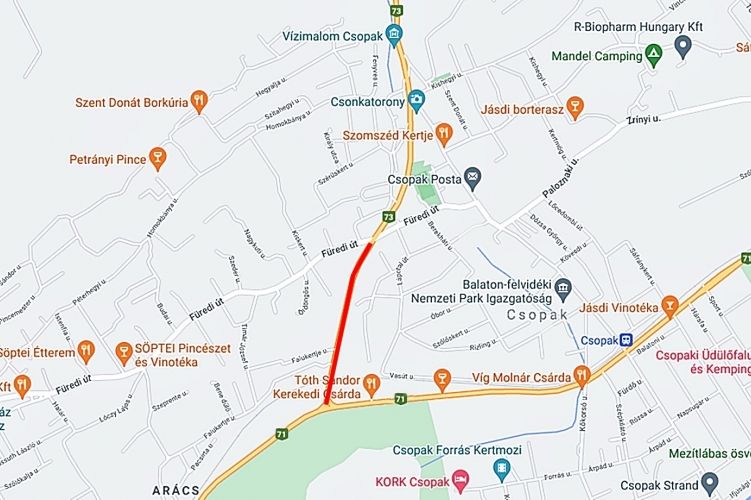 A Veszprém Megyei Rendőr-főkapitányság értesíti a járművezetőket, hogy 2021. május 18-án 10 órától 11 óráig lezárják a 73-as számú főút Füredi út alatti szakaszát a 71-es számú főútig, ahol a Falu kertje utca kereszteződésénél egy korábbi közúti közlekedési baleset bizonyítási kísérletét végzik a rendőrök.