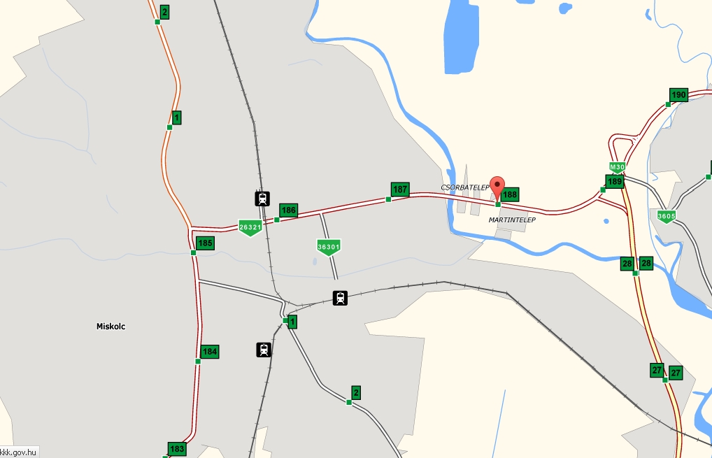 Miskolc, 3. számú főközlekedési út (József Attila út) 188-as kilométer-pontjánál a METRO kereszteződés és a Sajó-híd közötti 100 méteres (bevezető) szakaszán.