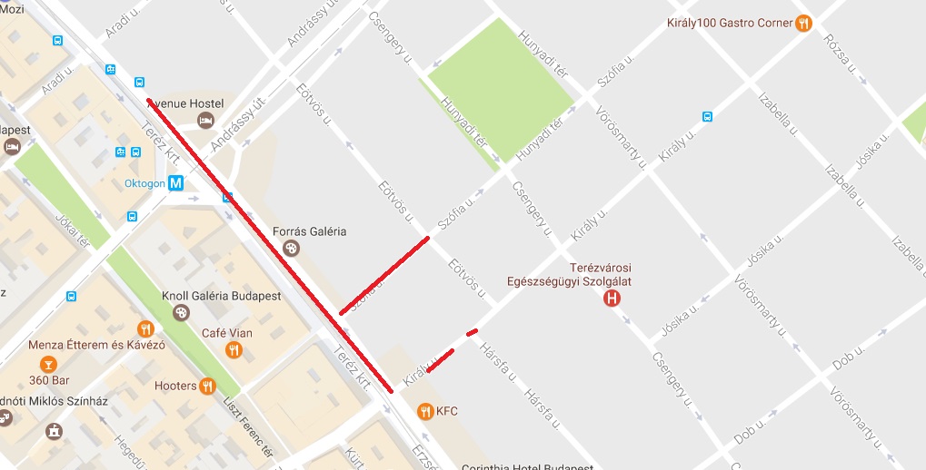 Erzsébet körút – Király utca kereszteződésében