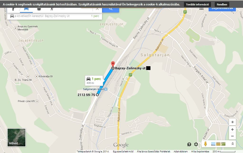 - a Salgótarján, Bajcsy-Zsilinszky út 73. szám (Citroen szalon) előtti útszakasz páratlan számozású oldalán lévő forgalmi sáv (Salgótarján belvárosából Pálfalva felé vezető forgalmi sáv) 400 méter hosszúságban.
