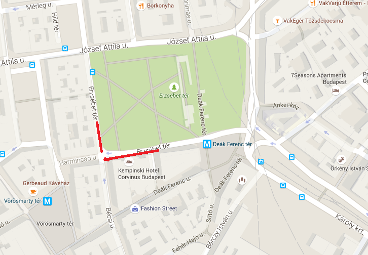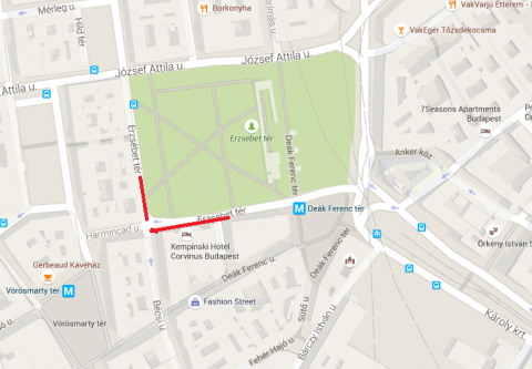 Erzsébet tér park felőli oldalán a Miatyánk utca és a Bécsi utca között,