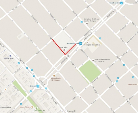 Andrássy út páros oldali szervizútján a Csengery út és Vörösmarty út között,