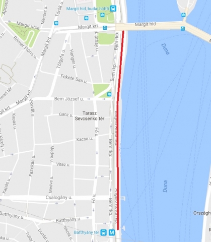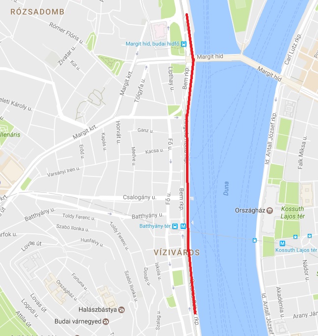 Budai alsó rakpartot, az Üstökös utca és a Halász utca között.