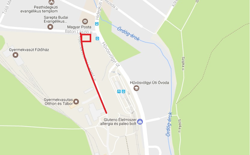 a Gyermekvasúthoz vezető út mindkét oldalán és a P+R parkoló területén.
