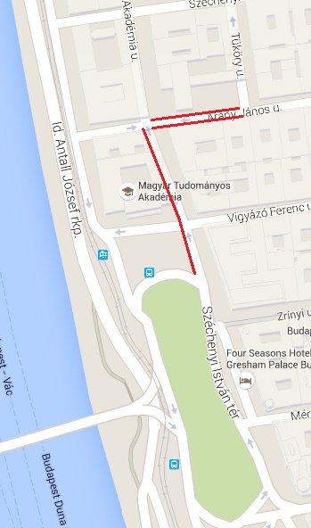 Akadémia utca páros oldalán a Széchenyi István tér és az Arany János utca között,