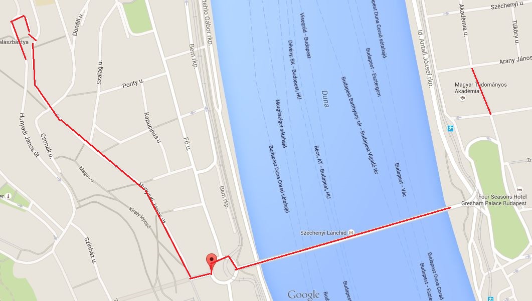 Magyar Tudományos Akadémia előtti kikötőponton - Akadémia utca - Lánchíd - Clark Ádám tér - Hunyadi János út útvonalon.