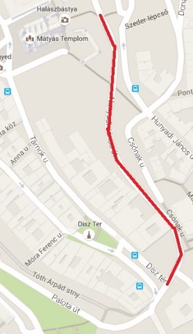 Hunyadi János úton a Halászbástya és a Dísz tér között.