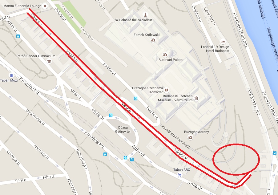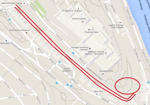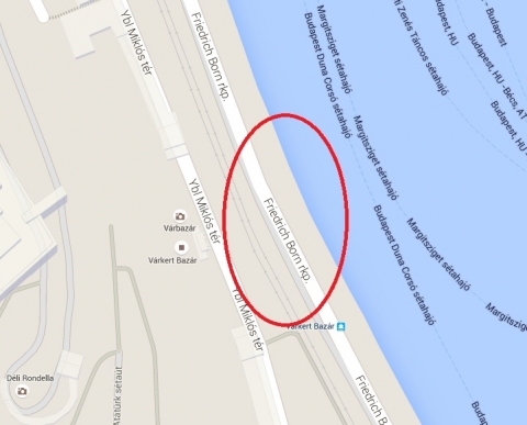 Budai alsó rakparton (Friedrich Born rakpart) a Várkert Bazár épületének magasságában található parkoló területén.