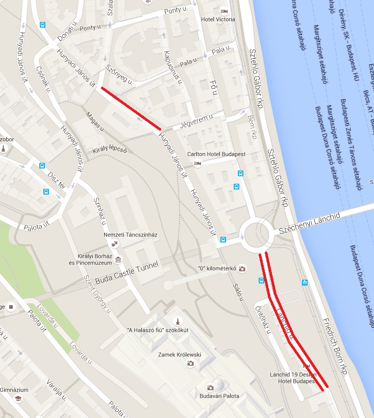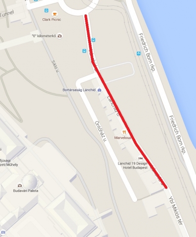 Lánchíd utca mindkét oldalán az Ybl Miklós tér és a Clark Ádám tér között,
