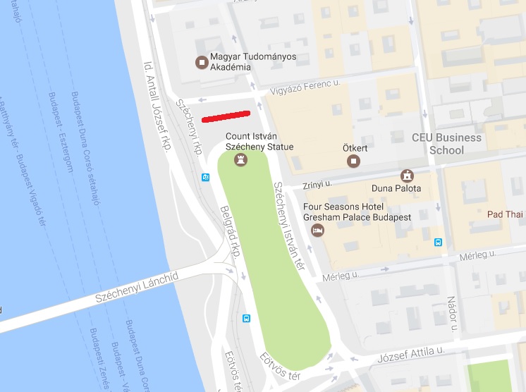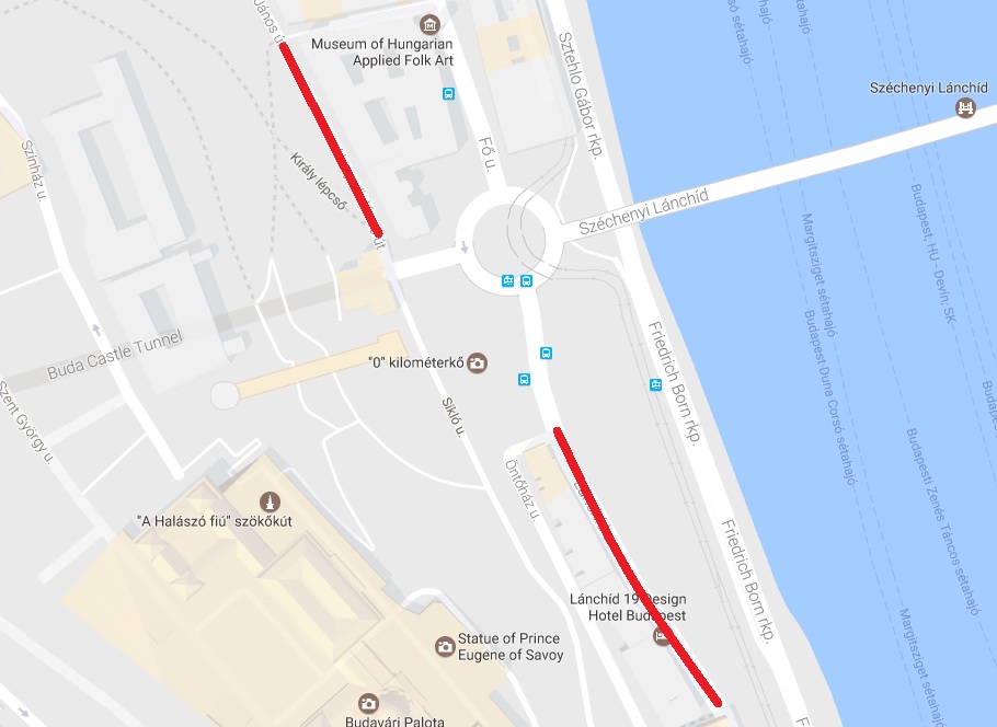 Lánchíd utca mindkét oldalán a Várkert Bazár és a Clark Ádám tér között,