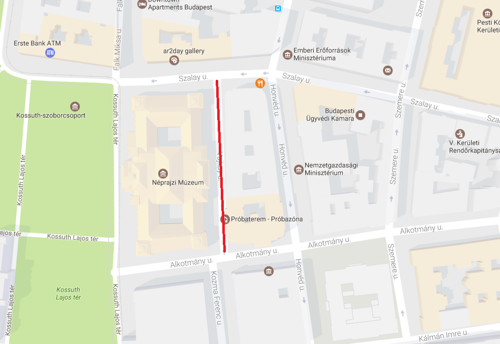 Vajkay utca páros oldalán az Alkotmány utca és a Szalay utca között.