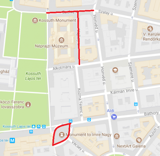 Szalay utca mindkét oldalán a Honvéd utca és a Kossuth tér között,