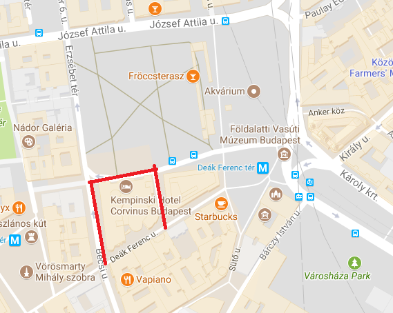 Bécsi utca Hotel Kempinski felőli oldalán a Deák Ferenc utca és az Erzsébet tér között.