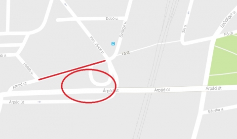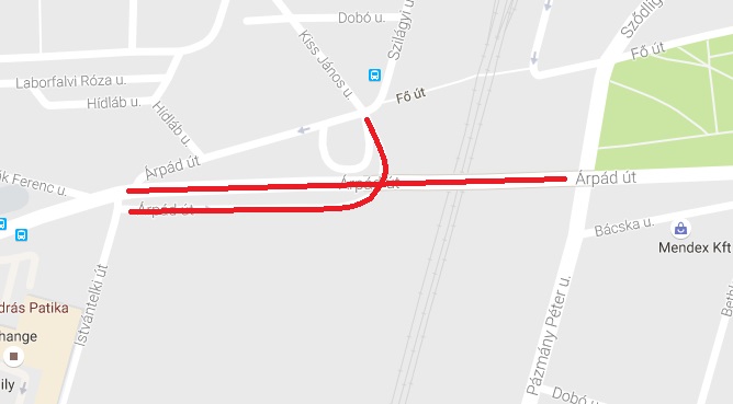 Árpád úti felüljáró alatti úttest.