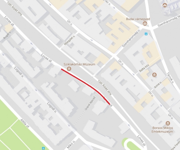 Lovas út 3-6. szám előtt 70 méteres szakaszon.