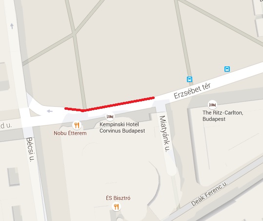 Erzsébet tér park felőli oldalán a Miatyánk utca és a Bécsi utca között.