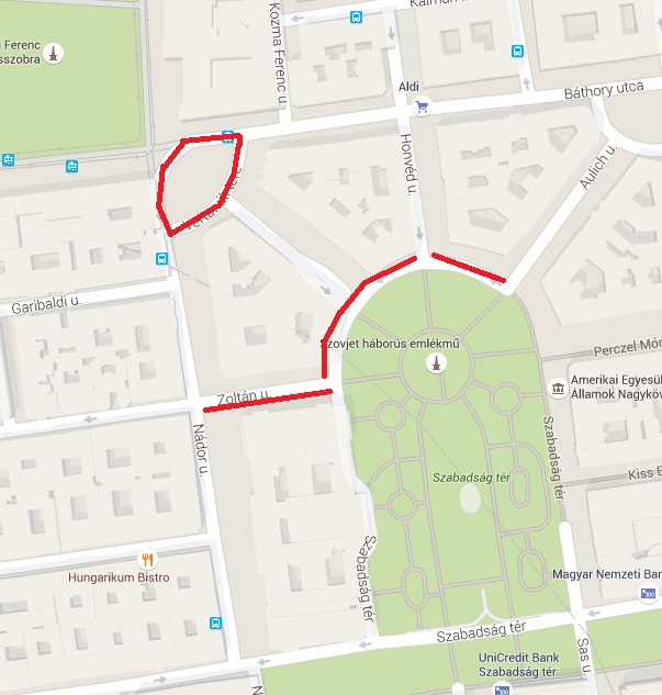 Szabadság téren az Aulich utca és a Zoltán utca között.