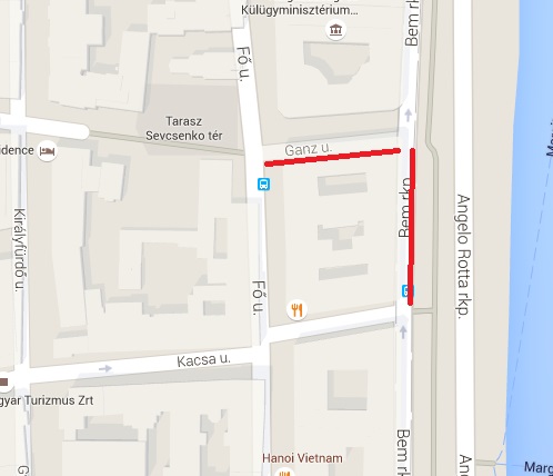 Bem felső rakpart Duna felőli oldalán a Kacsa utca és a Ganz utca között,