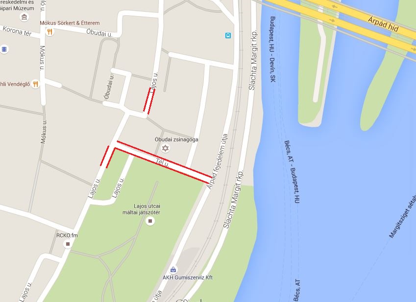 Lajos utca 156-158. szám előtti útszakaszon, mindkét oldalon,