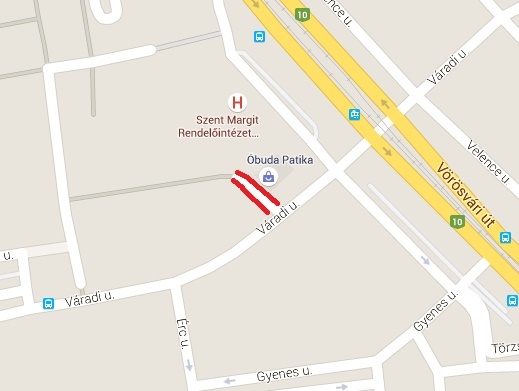 Váradi utca 24-es számmal szemben található szorgalmi utat (zsákutca).