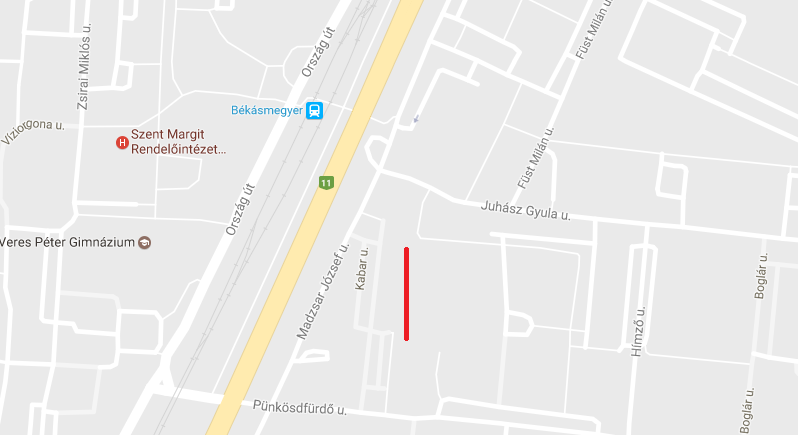 Vihar utca 2. szám előtti parkoló területén (Hunor utcától 20 méter hosszan)