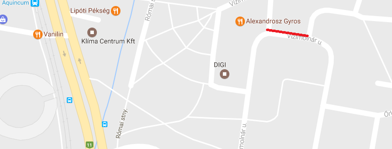 Vizimolnár utca 6. szám előtti parkoló területén (az épület oldalában 20 méter hosszon)
