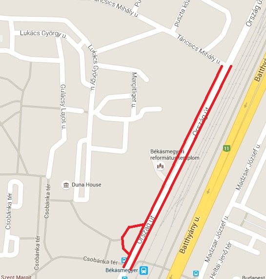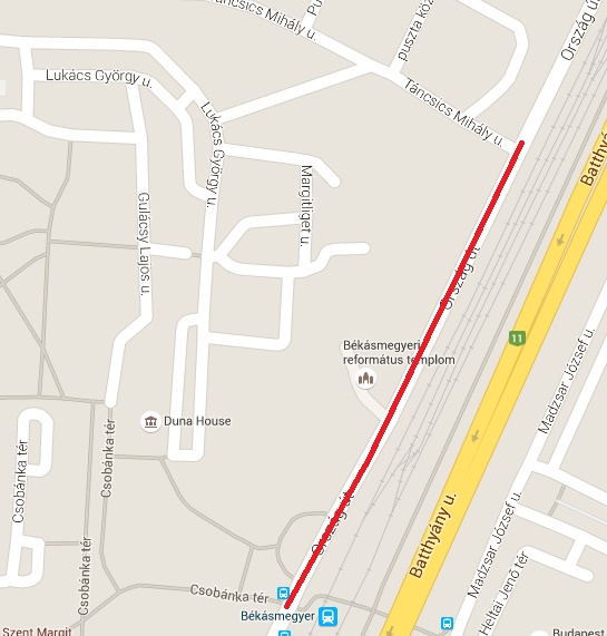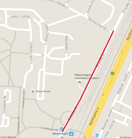 Ország út a Csobánka tér és a Táncsics Mihály utca között.