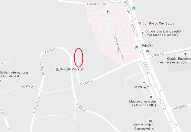 Kiscelli Múzeum bejáratától jobbra található parkoló területén.