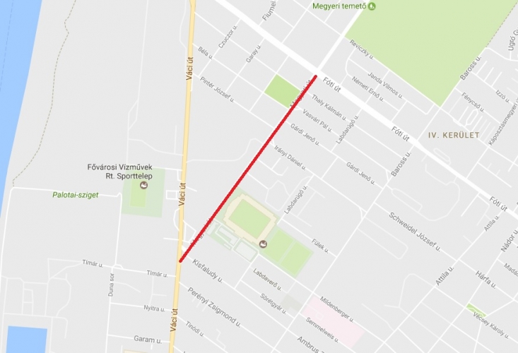 Megyeri utat a Váci út és a Fóti út közötti szakaszon, valamint