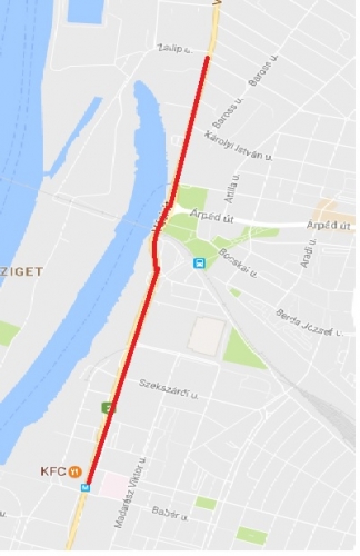 Váci utat a 41. és 170. szám közötti szakaszon.