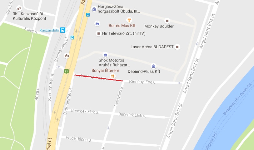 Reményi Ede utca a Szentendrei út és a Leányfalu utca között.