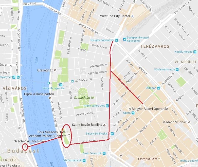 Széchenyi István tér a József Attila utca és a Lánchíd között.