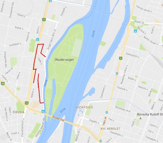 Szentendrei út a Bogdáni út és a Reményi Ede utca között,