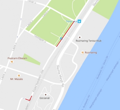 Árpád Fejedelem út a Bem rakpart és a Tavasz utca között.