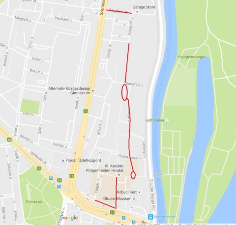 Bogdáni utca a Folyamőr utca és a Szentendrei utca között,