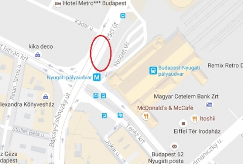 Nyugati téri felüljáró alatti részen a Váci út felől.