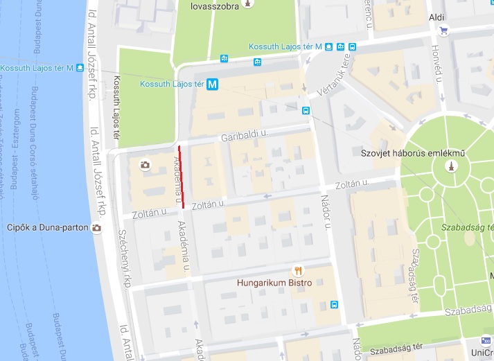 Akadémia utca páratlan oldalán a Zoltán utca és a Garibaldi utca között,